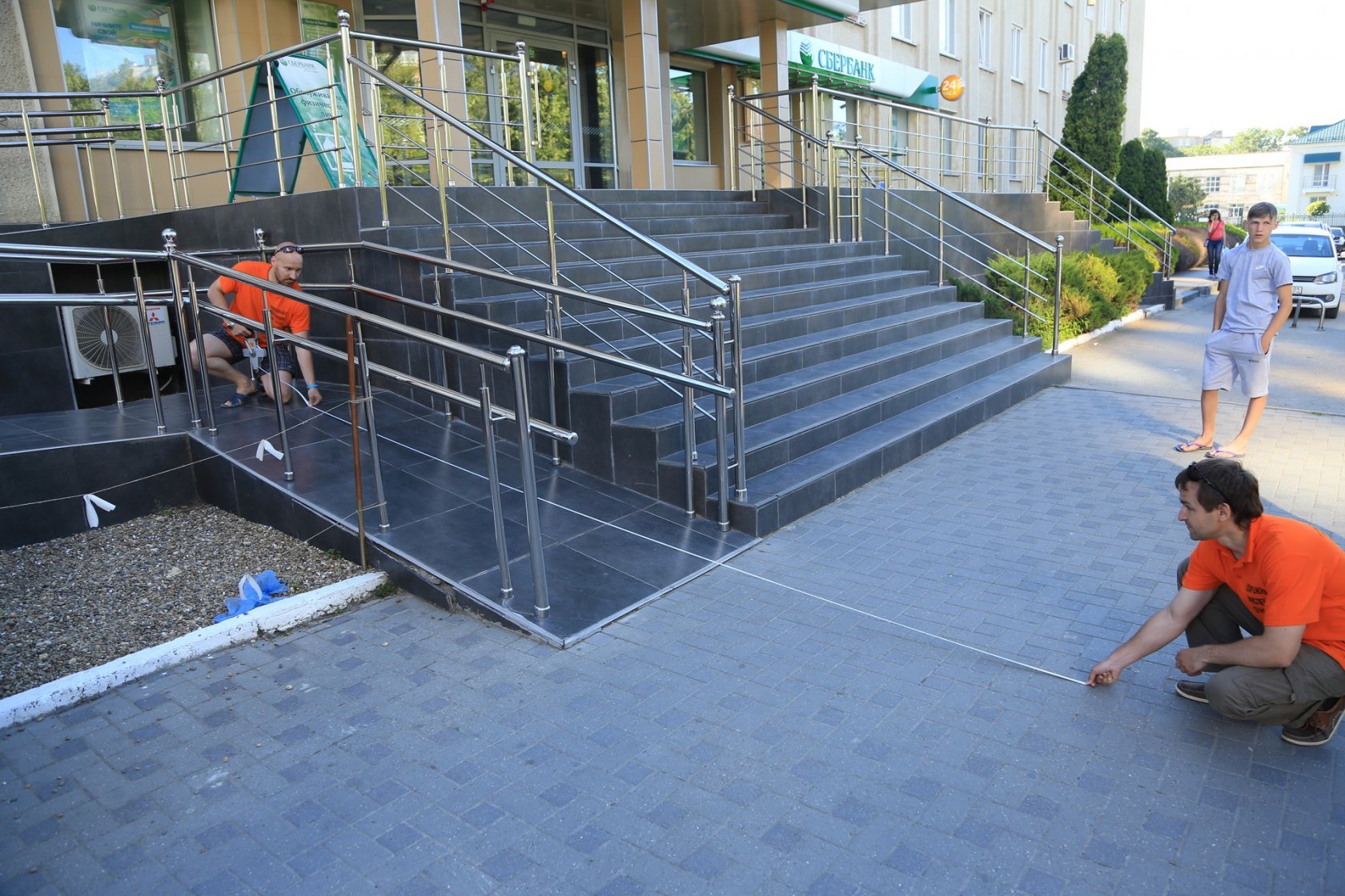 На вопросы, есть ли нормальный вход для маломобильных групп населения, администратор санатория ответил, что он имеется, но отказался его показать. Участники дорожной инспекции замерили уклон пандуса и, растянув рулетку, продемонстрировали, какой на самом деле должен быть его уклон по нормативам.